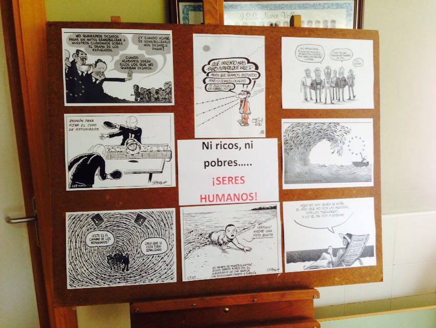 El centro ha querido aprovechar estas Jornadas para concienciar a la comunidad educativa de la emergencia humanitaria vivida como consecuencia de la guerra en Siria. Con este fin en el hall del centro se ha organizado un Mercadillo Solidario y una exposión con paneles acerca del conflicto y el drama de los refugiados. El dinero recaudado de la venta de artículos donados por alumnos, profesores y familias irá destinado a un campo de refugiados sirios.