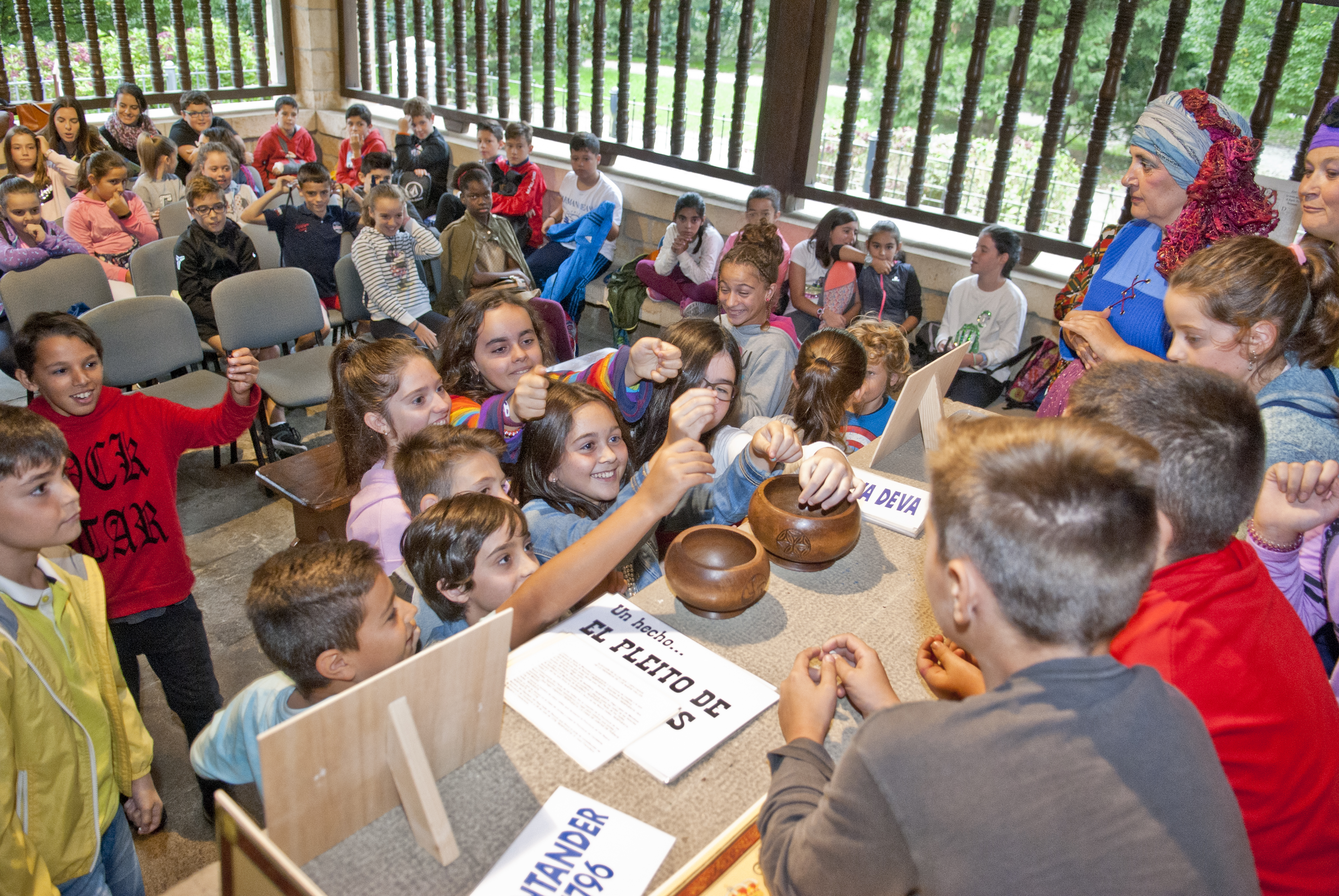 Finalmente, la tercera parte de la visita se realiza en el interior de la Casa de Juntas, donde los niños se convierten en alcaldes y diputados de la provincia de los Nueve Valles; recrean como se organizaban, decidían y votaban; y conocen la historia de Cantabria de una forma diferente.