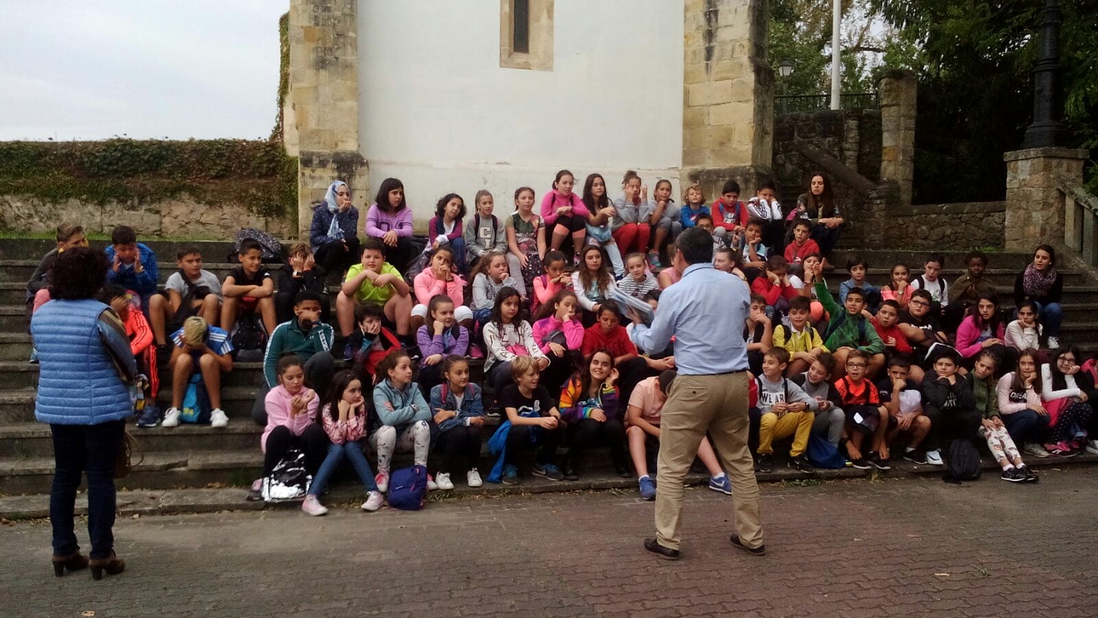 Belén Iglesias ha detallado que la visita guiada consta de tres partes. Una primera que se desarrolla en el entorno de la Ermita Concejil de los Valles, junto al puente, donde se encuentran las ruinas románicas de la antigua ermita de San Miguel (siglo XII), donde el alumno empieza a situarse en el escenario y el momento histórico.