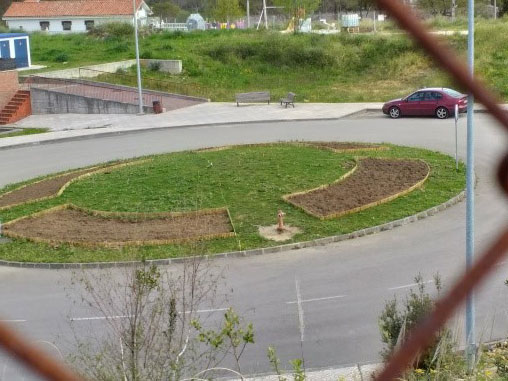 A lo largo del primer trimestre del curso 2017-18 alumnos y profesores han colaborado en el desarrollo de ideas y diseños adecuados para el ajardinamiento de la rotonda. También realizaron los planos y estudiaron las plantas que podrían ser adecuadas para el diseño elegido y para las condiciones del lugar. Se midieron diversos parámetros del suelo con el objetivo de conocerlo mejor. Resultó ser un suelo ácido, poco fértil y algo arcilloso. Durante gran parte del curso el alumnado realizó labores de desescombro, lo cual fue muy laborioso debido a la gran cantidad de piedras pesadas y por lo compacto de la tierra. En primavera, cuando ya se iba terminando el desescombro, se añadió dolomita para corregir la acidez del suelo y una enmienda con mantillo antes de pasar al abonado químico de fondo. Se decidió entonces dejar la siembra del césped para el siguiente otoño, ya que requiere mucha atención al principio.