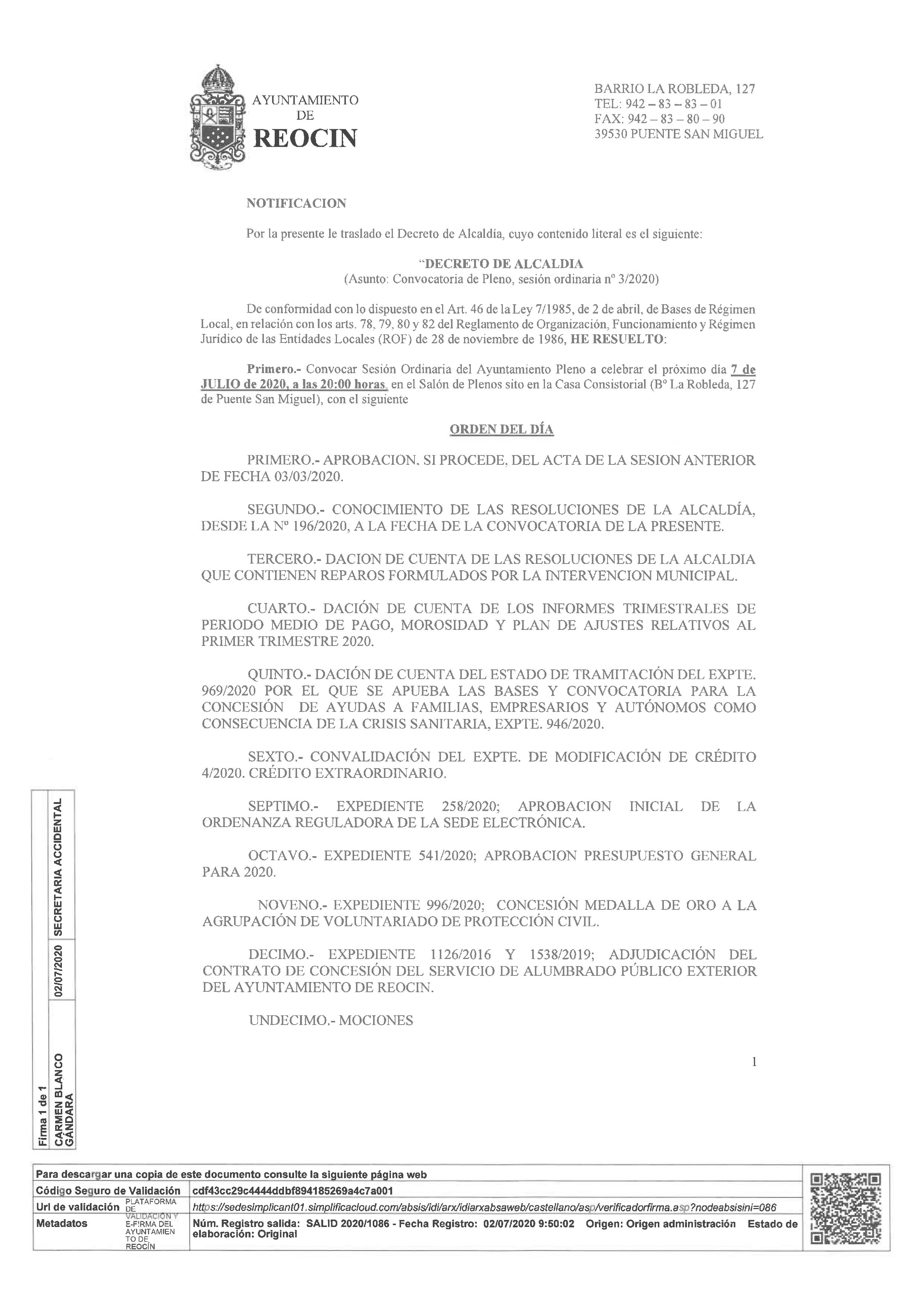 Orden del Día del Pleno 07/07/20